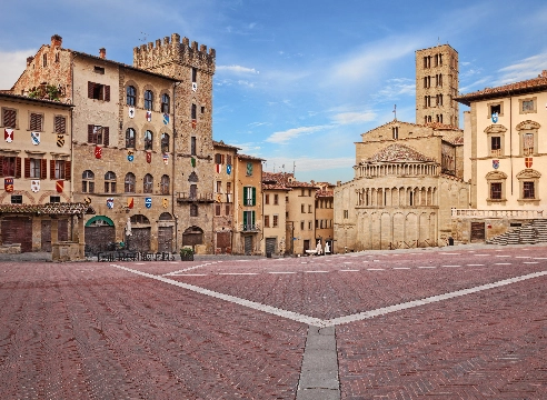 Moving on to Arezzo, the landscape becomes increasingly gentle, with hills and villages leading to a city rich in history and craftsmanship. From Florence, you can leave at 8:02 a.m. and arrive in Arezzo at 9:12 a.m., with convenient returns in the afternoon. Morning and afternoon trains are also available from Chiusi-Chianciano Terme for a day trip.